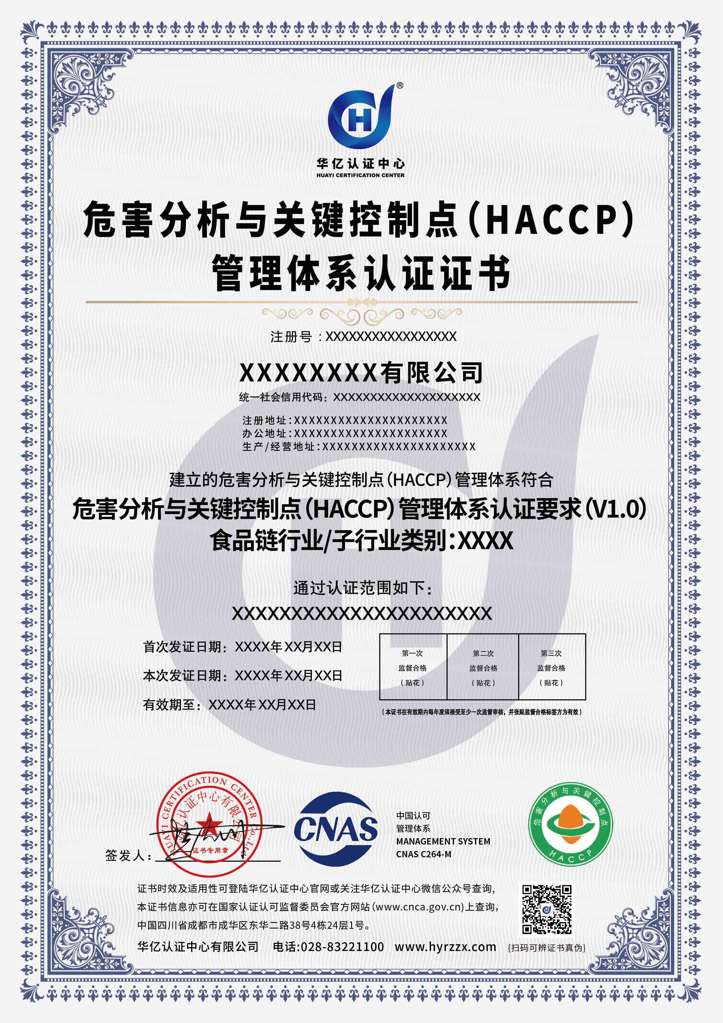 HACCP危害分析与关键控制点认证证书